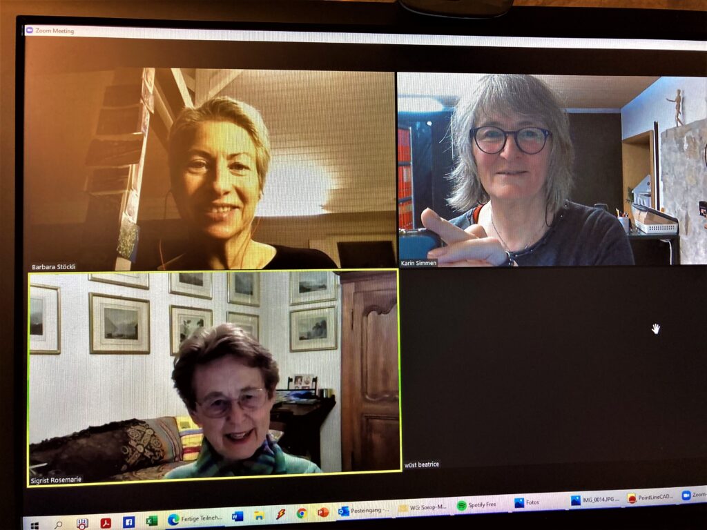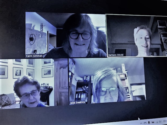 Statt im Hotel Schweizerhof trafen wir uns zuhause. Anstelle eines Treffens von 30 Frauen bei einem Abendessen, sassen wir zu viert oder zu fünft bei einem Glas Wein vor dem Bildschirm. Karin Simmen, unsere Präsidentin, teilte die Clubmitglieder in verschiedene Gruppen auf, setzte den Termin und lieferte technische Tipps. Die virtuellen Treffs per zoom gelangen mal gut, bei anderen waren sie eine Premiere und es dauerte etwas länger, bis alle technischen Hürden erfolgreich überwunden waren.