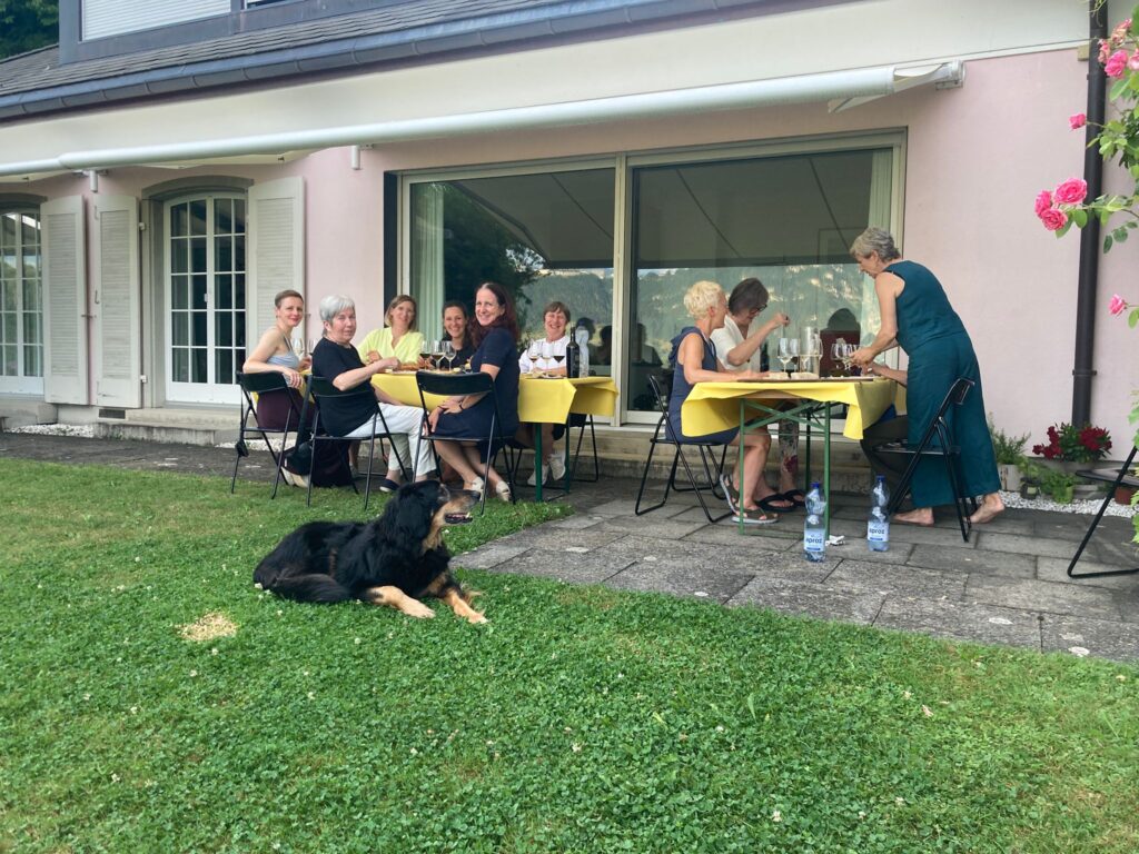 Eines der diesjährigen Sommermeetings fand bei unserem Mitglied Sibylle zu Hause statt. Um den Stipendienfonds zu äufnen, ging der Gewinn des von allen anwesenden Mitgliedern bezahlten Essensbetrag in den Stipendienfonds. Wir hatten Wetterglück und konnten einen gemütlichen, warmen Abend draussen geniessen. Dank tatkräftigen Händen hielt sich der Aufwand in Grenzen.